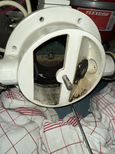 Anschliessend zerlegte ich die defekte Fäkalienpumpe. Auch sie sah wesentlich appetitlicher aus als erwartet. Altersbedingt riss die Gummimembrane vermutlich als Christoph die Pumpe bei der Bootsübernahme kurz testen wollte. Er erzählte später, dass sie da etwas leckte und er sie deshalb gleich wieder abstellte. Hätte er nach unserem ersten Wochenende nicht das entsprechende Seewasserventil geschlossen, wäre unser Boot ziemlich sicher kurz darauf abgesoffen. 😱 Nicht ohne Grund soll man bei längerer Abwesenheit die Ventile schliessen!
