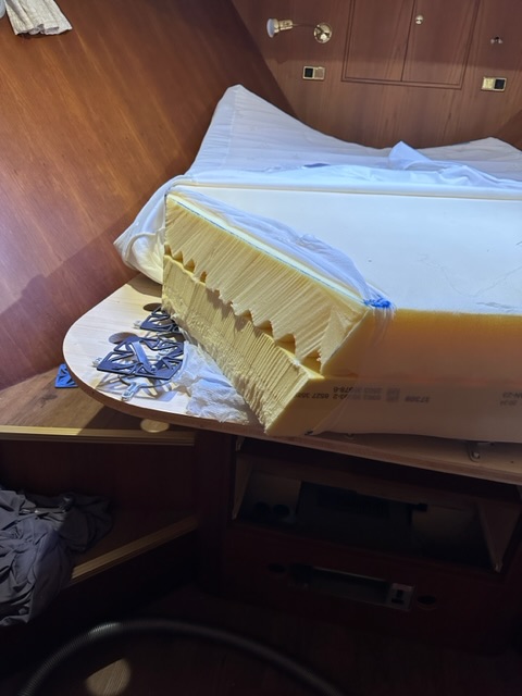 Ganz oben auf meiner persönlichen To Do-Liste stand der Bettumbau. Schliesslich geht nichts über erholsamen Schlaf. Gut, Christoph hätte sich lieber mit den neuen Batterien beschäftigt, aber die sind (zum Glück 😉) nicht rechtzeitig geliefert worden. Teile des Bettes hatten wir letztes Mal demontiert. So konnten wir nun mit den neuen Teilen einen neuen Aufbau machen. Im Kopfbereich musste ich mit viel Mut die Matratze mit dem Brotmesser zurecht schneiden. Die Umrandung muss noch gemacht werden aber zumindest liegt es sich jetzt wieder bequem.