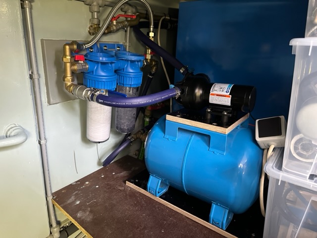 Wir hatten uns eine neue Druckwasserpumpe gekauft, da das Wasser in der Dusche nur als Rinnsal ankam. Während wir noch auf fehlende Anschlussteile warteten hatten wir im Baumarkt einen Wasserfilter gefunden, den Christoph auch gleich ins System einband. Problem an der ganzen Geschichte waren unterschiedliche Anschlüsse: metrisch, zoll und irgendwas Holländisches. 🤪 Wir wurden zum Dauerbesucher im hiesigen Baumarkt. Die Dame an der Kasse kennt uns inzwischen. 😂