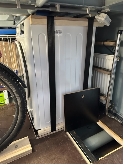 Christoph kümmerte sich zudem um die Waschmaschine und befestigte sie neu. Ich machte derweil die Umrandung vom Bett fertig.