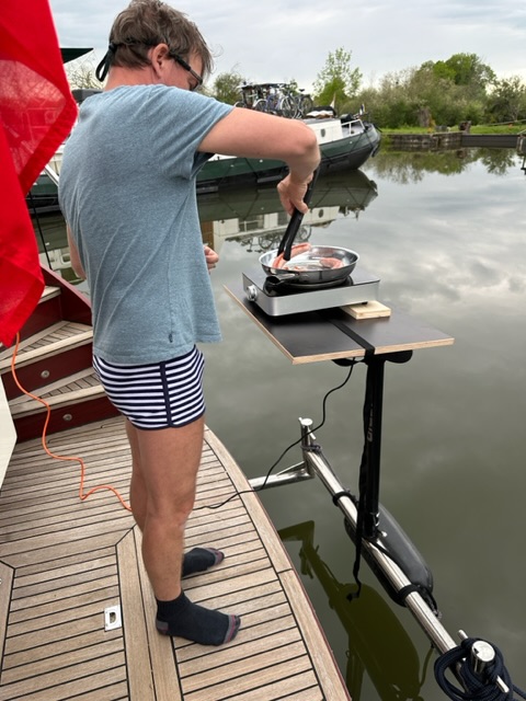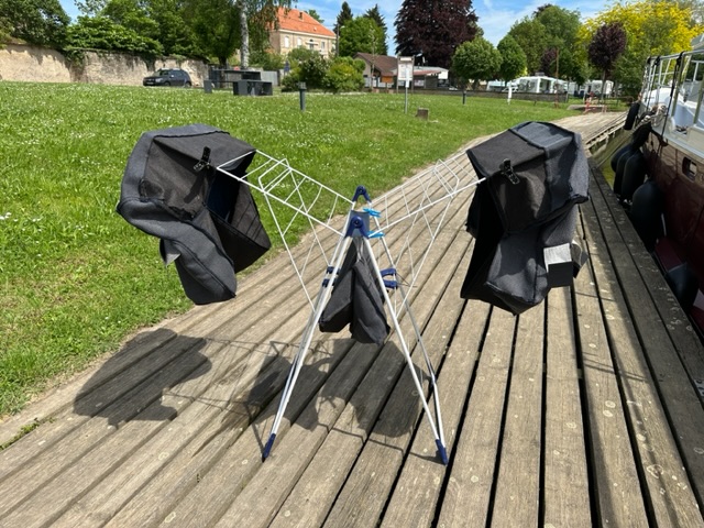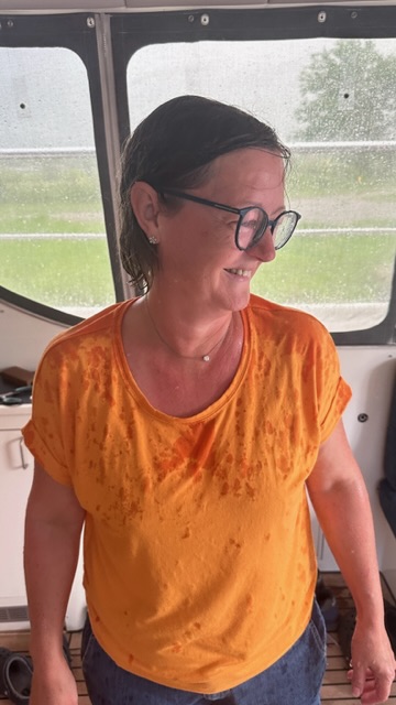 Unsere Tagesetappen hielten wir bewusst kurz. Alles war neu und erforderte viel Konzentration. Das war anstrengend und machte müde. Zudem war das Wetter in der ersten Woche meistens nass. Bevorzugt zu dem Zeitpunkt, wenn wir anlegten, schüttete es aus vollen Eimern. 😂 Zum Glück habe ich gute Kleidung.