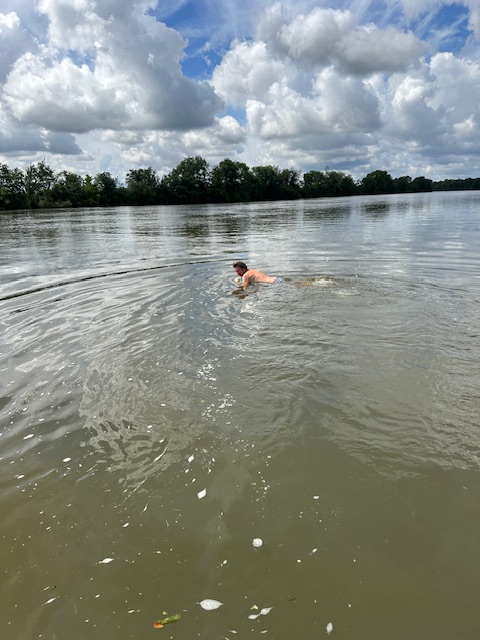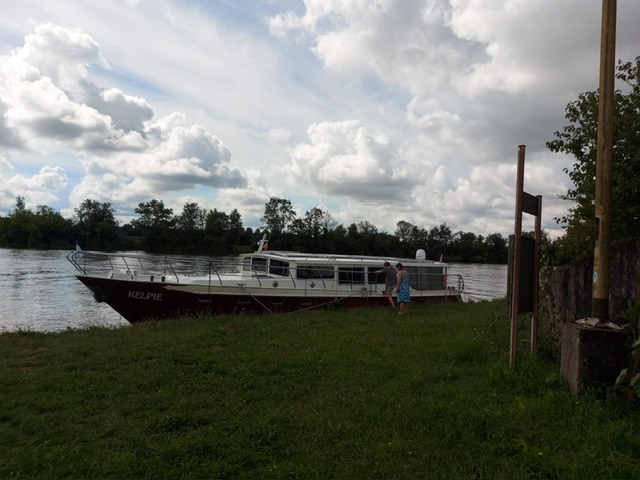 Nach dem Frühstück fuhren wir los. Das Wetter war herrlich warm und windstill. Wir fuhren bis Les Maillys, wo wir spontan für eine Mittagspause anlegten. Die Pause nutzte Christoph um im Motorraum den Lüfter auszutauschen. Anschliessend kühlte er sich in der Saône kurz ab.