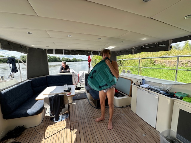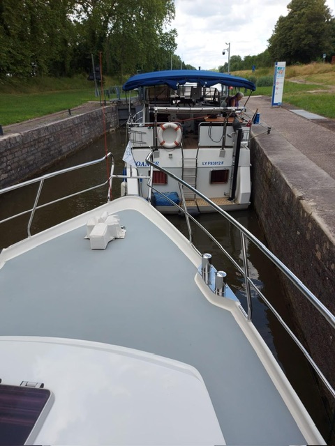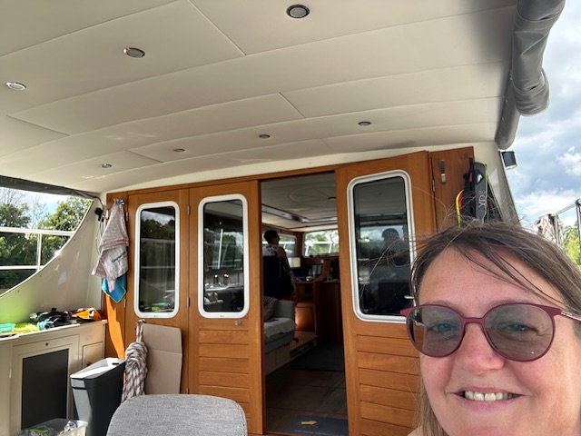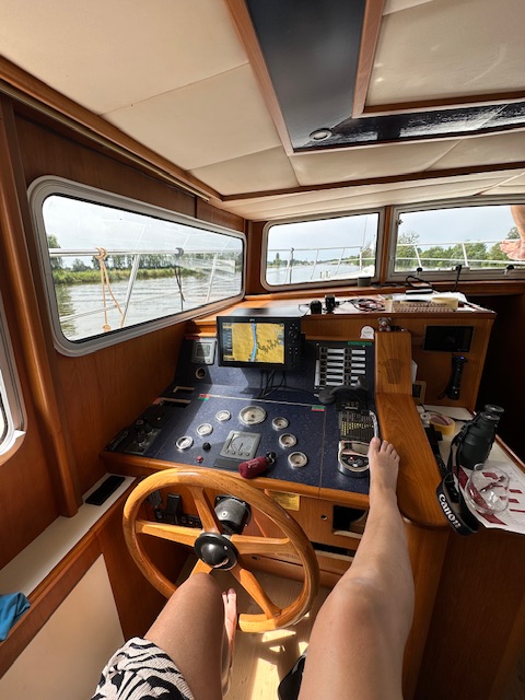 Ein herrlich ruhiges Plätzchen. Hier hätten wir auch gut bleiben können, aber schliesslich wollten wir ausfahren. So fuhren wir weiter nach Auxonne. Auch Barbara durfte mal hinters Steuer.