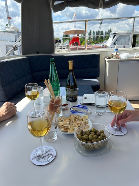 Nach einem schnellen Abendessen setzten wir uns trotz kühlem Wind für einen Absacker aufs Deck.