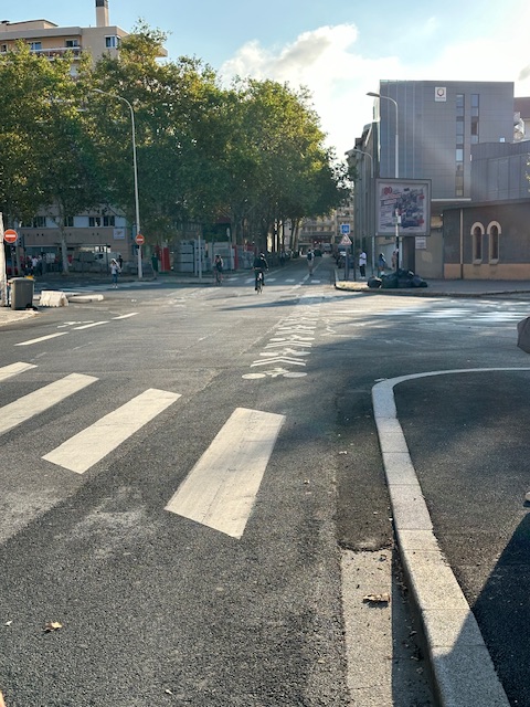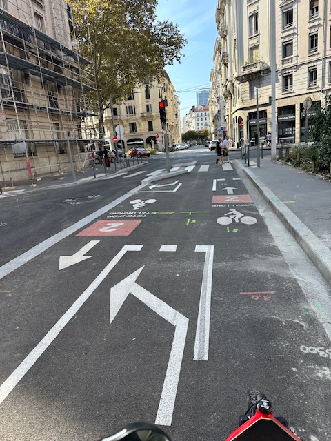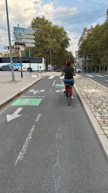 Das Radfahren im Zentrum von Lyon verlief erstaunlich entspannt. Gut ausgebaute Radwege, klare Markierungen, die den Radfahrer zum Beispiel sicher über Kreuzungen führen. Je weiter wir allerdings in die Aussenbezirke fuhren, desto schlechter wurde die Situation.