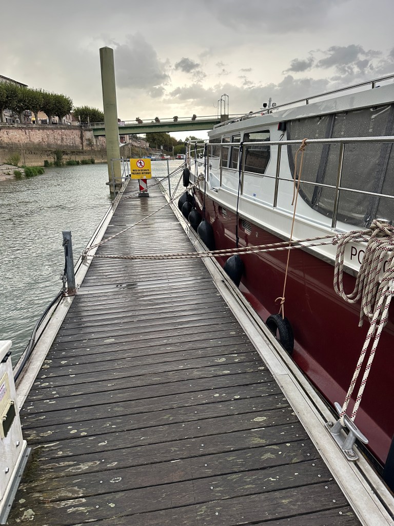 Das Erlebnis am Steg in Tournus macht uns hingegen heute noch sauer. Als dort etwas Wind aufkam, löste sich eine Klampe an der wir unser Boot festgebunden hatten und es driftete weg. Mit viel Glück und dank unserer schnellen Reaktion konnten wir Schäden an unserem und am benachbarten Boot verhindern. Eine halbe Stunde später wären wir (ohne Ginger) bereits im Restaurant gesessen. Oder wäre es in der Nacht passiert, während wir geschlafen haben… 😡 Seit diesem Vorfall versuchen wir unser Boot immer an mindestens 3 Klampen festzumachen.