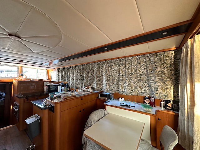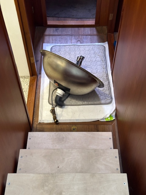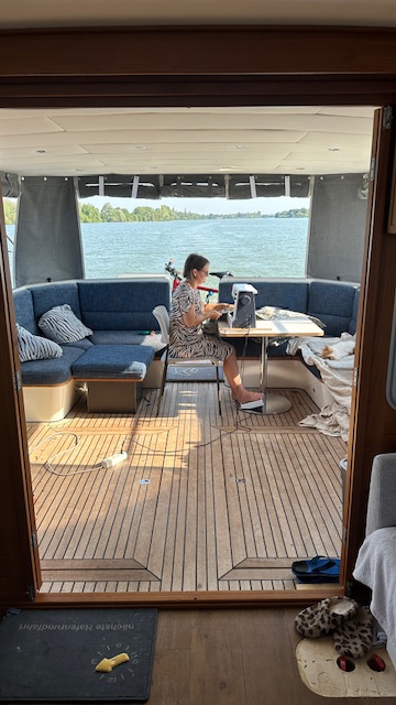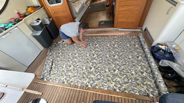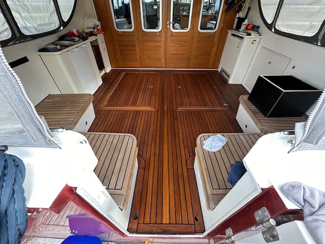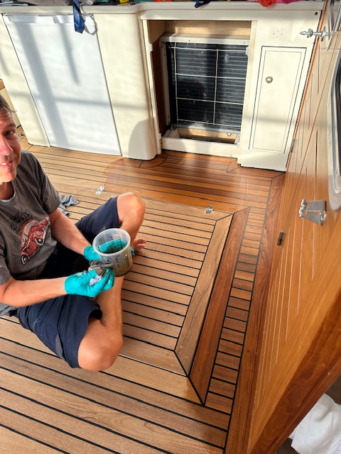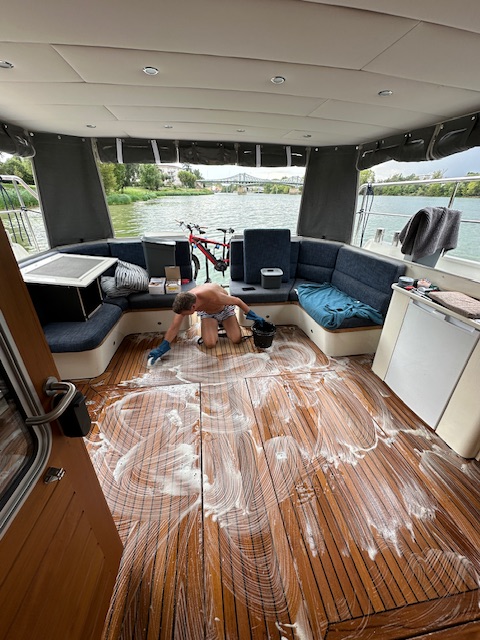 Christoph schliff und ölte das Teakdeck. Der aufgefrischte Boden sieht wirklich edel aus.