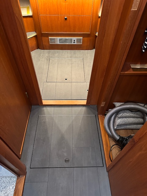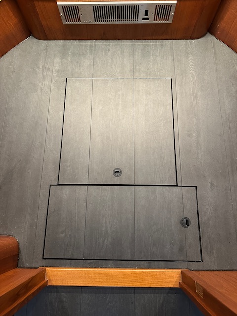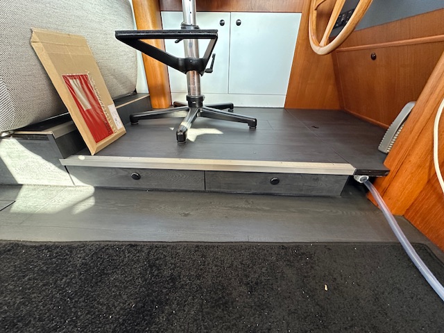 Über einen Monat ist es her seit wir zum letzten Mal auf der Kelpie waren. Während unserem Weihnachtsurlaub hatten wir den neuen Fussboden verlegt. Zuhause ging diese Aufgabe sozusagen weiter. Christoph machte die neuen Bodenklappen und Schubladenfronten, die wir nun montieren konnten. Es fehlen noch ein paar Details aber das Podest sieht nicht mehr wie ein Fremdkörper aus.