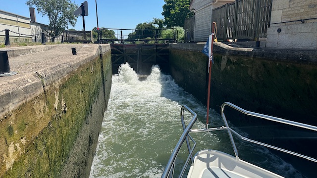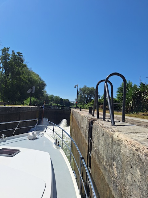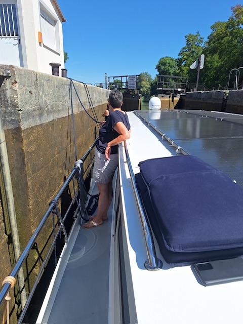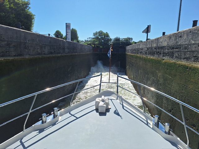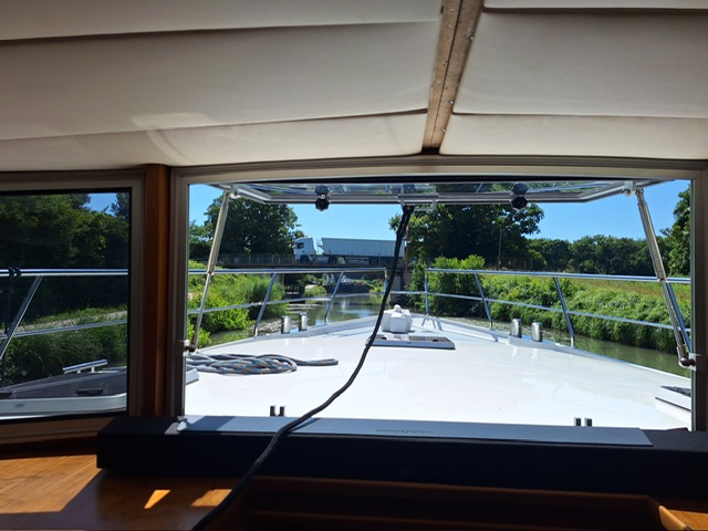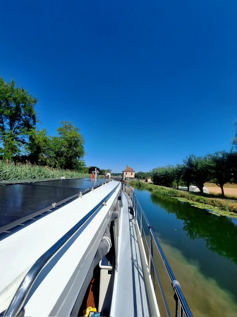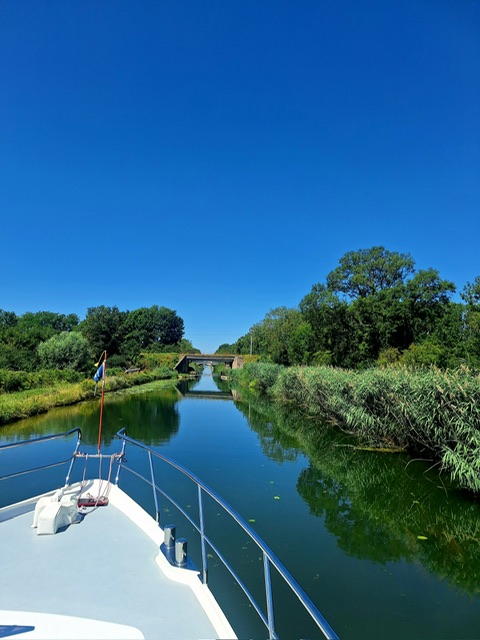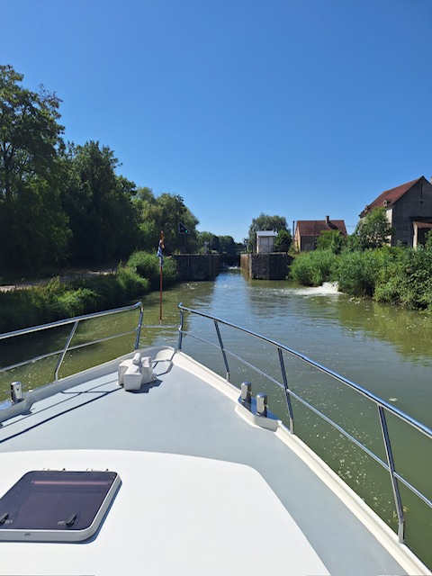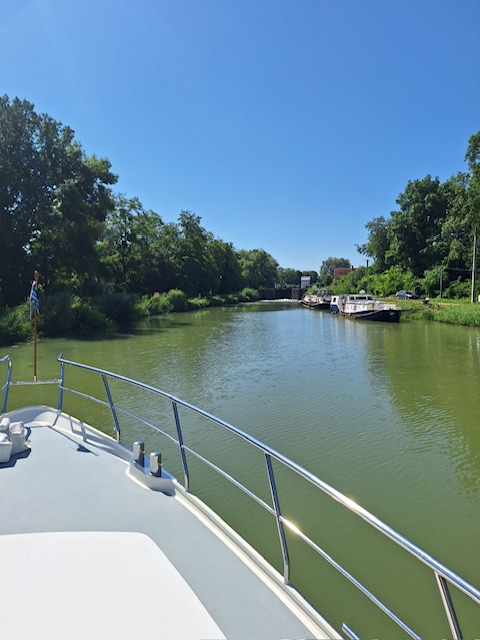 Nachdem alle ausgeschlafen hatten, gabs Frühstück und anschliessend fuhren wir los. Den Rhein-Rhone-Kanal bis Dôle. Beim letzten Mal hatte die Fahrt nach Choisey 3,5 Stunden gedauert. Dieses Mal waren es geschlagene 5 Stunden. Uns war nicht ganz klar woran es gelegen hatte. Und weil es so lange gedauert und es einen freien Platz in Choisey hatte, fuhren wir auch nicht weiter bis Dôle.