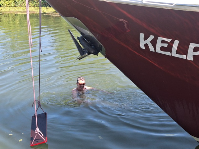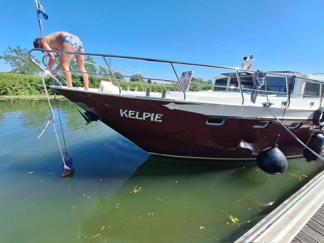 Danach ging es los. Christoph fuhr uns ruhig aus dem Hafen. Wir wollten die Nacht am Quai verbringen. Da dieser bereits belegt war legten wir gegenüber bei der Brücke mit Erdnägeln an. Abendessen gabs im Restaurant am Quai. Zurück auf der Kelpie nahmen die drei noch einen Absacker. Ich verkroch mich ins Bett. Ich fühlte mich die ganze Woche schon irgendwie unfit.