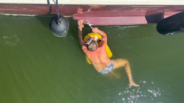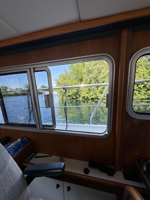 Dort erwartete uns doch tatsächlich ein offenes Seitenfenster und der dazu passende Wasserschaden. Der Hafenmeister hatte das Fenster beim Umstellen geöffnet und nicht mehr geschlossen. Entsprechend angefressen gingen wir zum Chef des Hafens und reklamierten. Über eine Lösung müssen wir uns noch Gedanken machen.