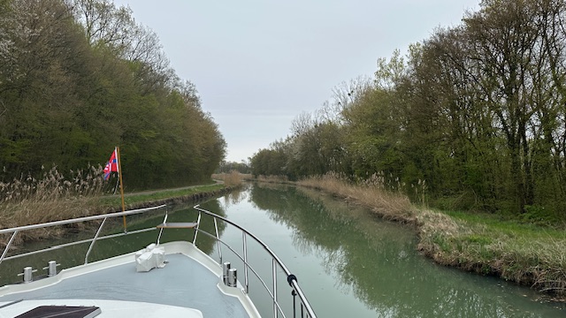 Am Samstagmorgen fuhren wir zeitig los. Wir wussten, dass der Schweizerische Schleusenschiffer-Club dieses Wochenende einen Schleusenkurs veranstaltet und wir wollten vor ihnen auf dem Rhein-Rhone-Kanal fahren. Wir hatten einen Mittags-Halt in Abergement-la-Ronce geplant, doch die Zofie hatte sich so ungeschickt platziert, dass kein anderes Boot mehr Platz hat. In Choisey hatten wir mehr Glück und blieben gleich hier.