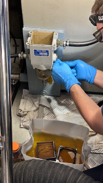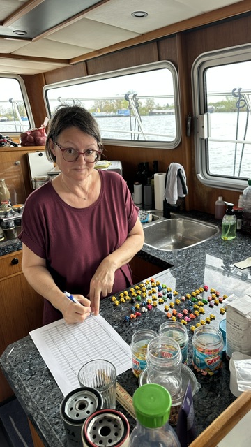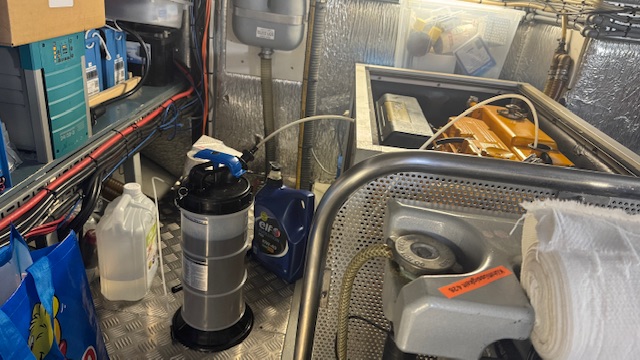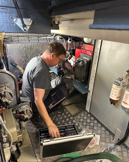 Nachdem Christoph sein Geburtstagsgeschenk ausgiebig getestet hatte, verschwand er im Motorraum. Er machte den Öl- und Filterwechsel am Antriebsmotor, wechselte die Kühlflüssigkeit, Impeller und tauschte alle zugehörigen Dieselfilter. Ab und an waren Flüche zu hören, die zeigten woran er gerade arbeitet. 🤭 Ich widmete mich derweil unserem Dreiwegeventil vom Toilettenauslass. Dichtungen tauschen und Urinstein raus brechen. Der ausströmende Duft mischte sich mit Öl- und Dieselgeruch. Lecker 🤢