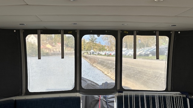 In Dole legten wir uns gegenüber des Hafens an die Mauer, da wir weder Wasser noch Landstrom benötigen. Die nächsten Tage frönten wir dem süssen Nichtstun und waren mindestens genauso fleissig. Ich ersetzte die Fensterfolien unserer Kuchenbude. Nun sieht man wieder deutlich nach draussen aber weiterhin nicht nach drinnen. Christoph verfeinerte den Umbau des Badezimmers und erledigte gefühlt tausend Kleinigkeiten.